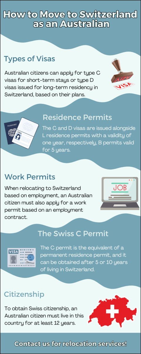 There are many reasons to relocate to Switzerland from Australia, however, most citizens of this country immigrate to this European destination for business, employment, or studies. This means, that for each case-specific documents for relocation are required.