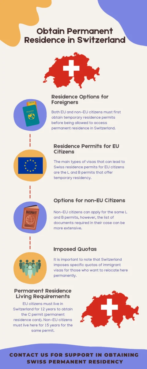 Below, our immigration lawyer in Switzerland presents the main routes to permanent residency for EU and non-EU citizens. You can rely on us for assistance in obtaining a residence permit in Switzerland. If you need immigration assistance in another country, such as Romania, we recommend our partners – ImmigrationRomania.Lawyer.